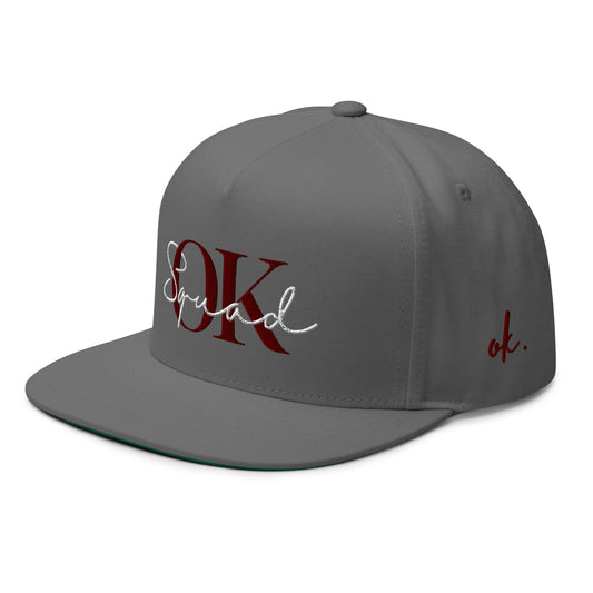 OK Squad 5-Panel Flat Bill Cap - Grey/Maroon