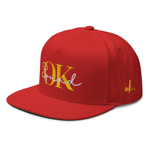 OK Squad 5-Panel Flat Bill Cap - Red/Yellow